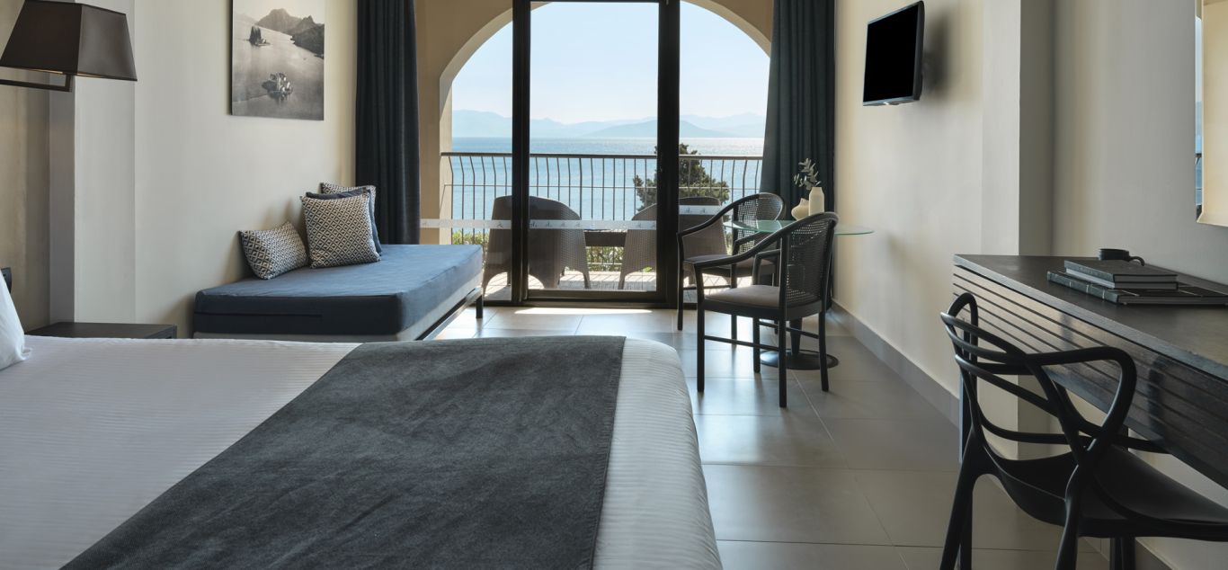 Goście mogą oddać się błogiemu wakacyjnemu nastrojowi, podziwiając z balkonu cudowny widok na szmaragdowe Morze Jońskie. Pokoje te mogą wygodnie pomieścić do 3 osób.